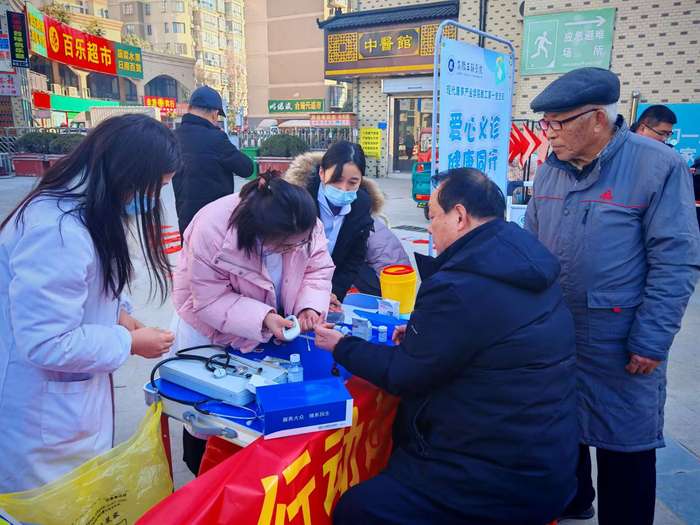 学院师生在社区搭建起了临时义诊点,准备了专业的医疗设备,有条不紊地为居民们提供测血糖、量血压、艾灸等各项服务。对于居民提出的健康问题,老师们从常见疾病的预防到日常保健的建议等方面耐心解答,用专业知识为居民健康保驾护航。