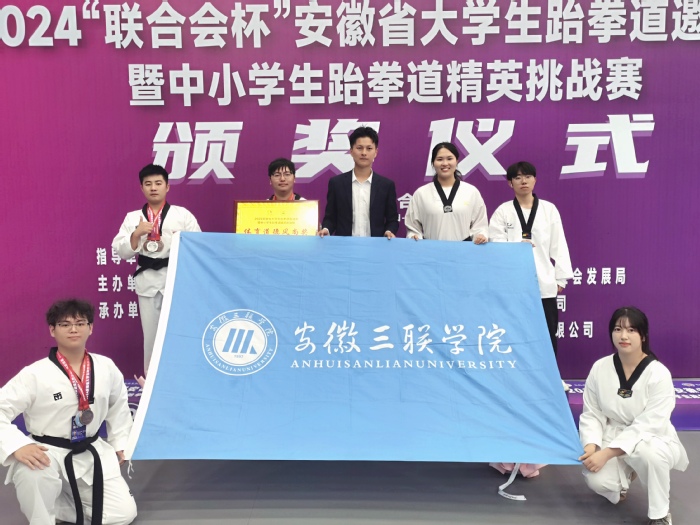 2024年10月5日至6日,由安徽省青少年体育联合会主办的2024“联合会杯”安徽省大学生跆拳道邀请赛在合肥举行。本次赛事共有来自中国科学技术大学、合肥工业大学、安徽大学等54所学校和道馆参加比赛。我校武术队教练员朱超强带领聂龙、韦浩男、王紫妍、叶晨、施云行、魏宗缘6名队员参加比赛,斩获多个奖项。