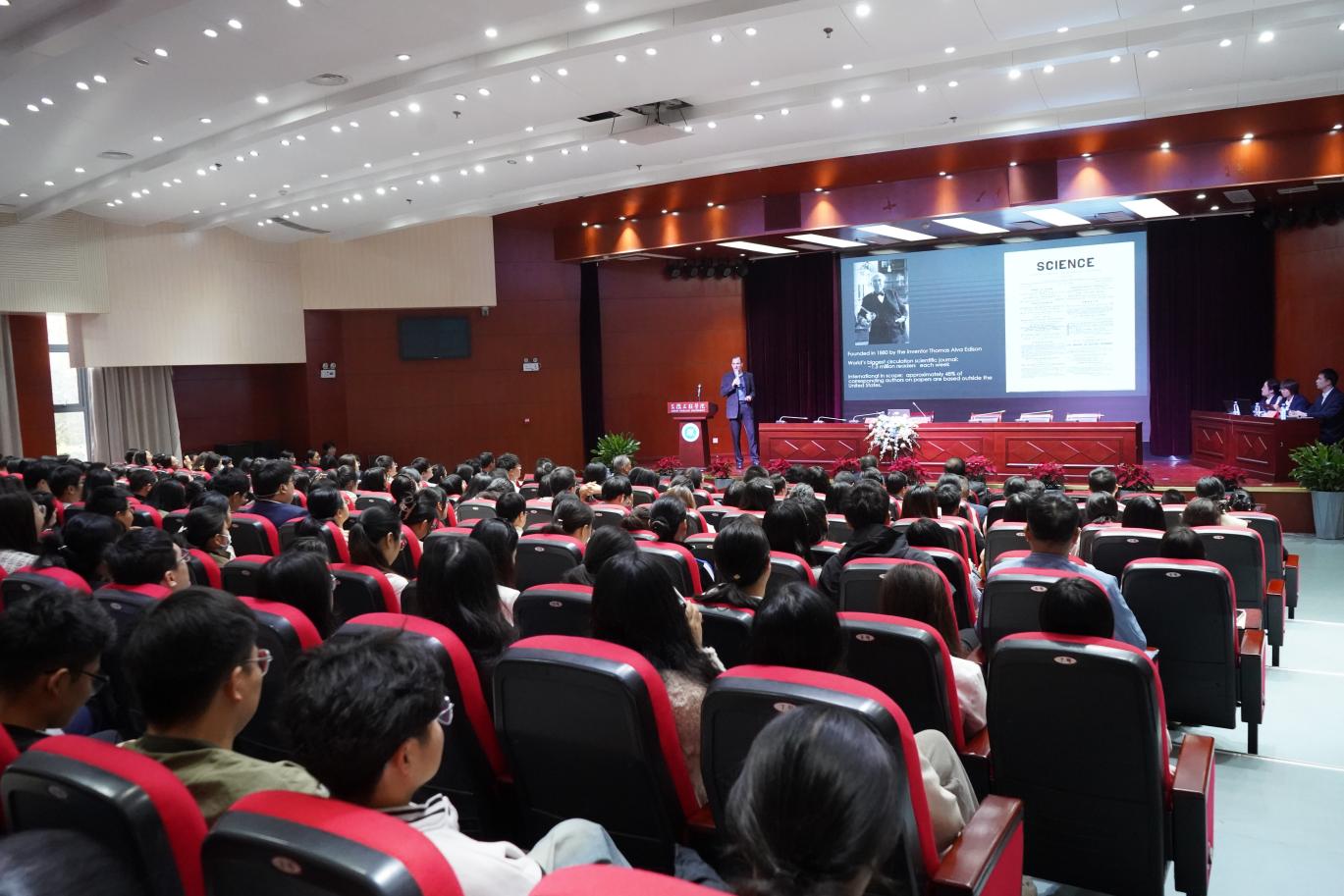 上午的学术报告会由副校长操晓峰主持。richard stone先生从《科学》杂志发表过的四个论文题目让师生选出引频次数最高的论文,引出《科学》杂志在重大发现传播的广泛性。随后,介绍了《科学》杂志的发展历程、论文接收过程以及cover letter和摘要写作的注意事项,并指出cover letter和摘要是一篇文章很重要的部分,也是编辑最先接触到的部分,建议论文投稿需要用精准的语言在简短的篇幅内阐述清楚研究的背景、结果和意义。然后讲述了科学新闻的吸引力价值、读者规模、重要性、结果的可靠性和及时性的五个标准。同时结合ai对高等教育的影响,以及生成式人工智能在生命科学领域,特别是新药临床开发的深远影响。同时揭示科学思维的养成,要求我们进行深入的思考和分析,从而实现对问题的创新突破,提升我们研究的深度和广度。最后,与参会师生进行了交流互动。richard stone先生的报告内容丰富,见解独到,为我校师生提供了一个了解国际科学前沿动态的宝贵机会。