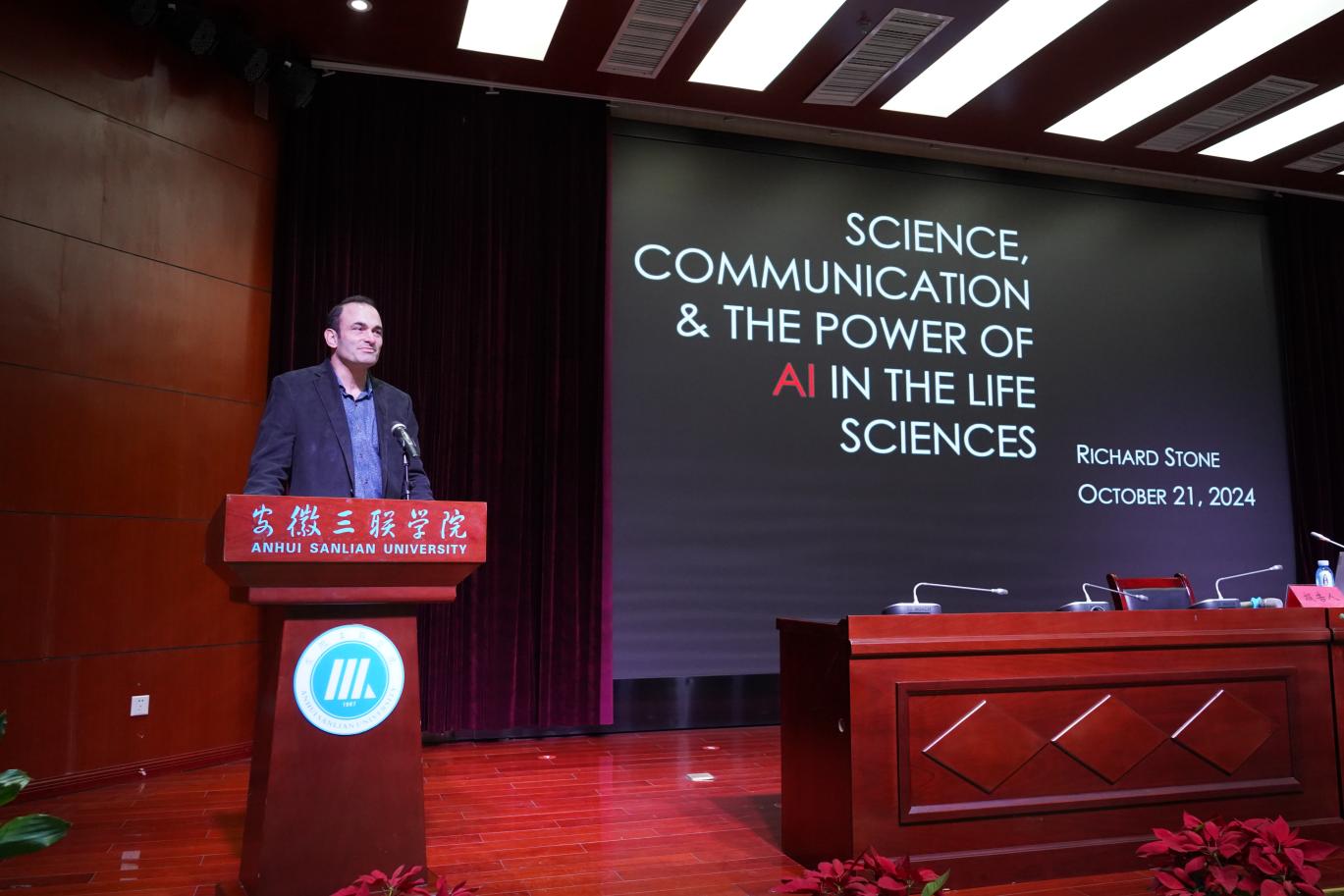 10月21日,国际著名学术杂志《科学》资深国际记者richard stone先生应邀来访我校,进行了一场题为science, communication & the power of ai in the life sciences的学术报告,并在下午举行了专题座谈会。校长金会庆和部分在肥校领导参加活动。