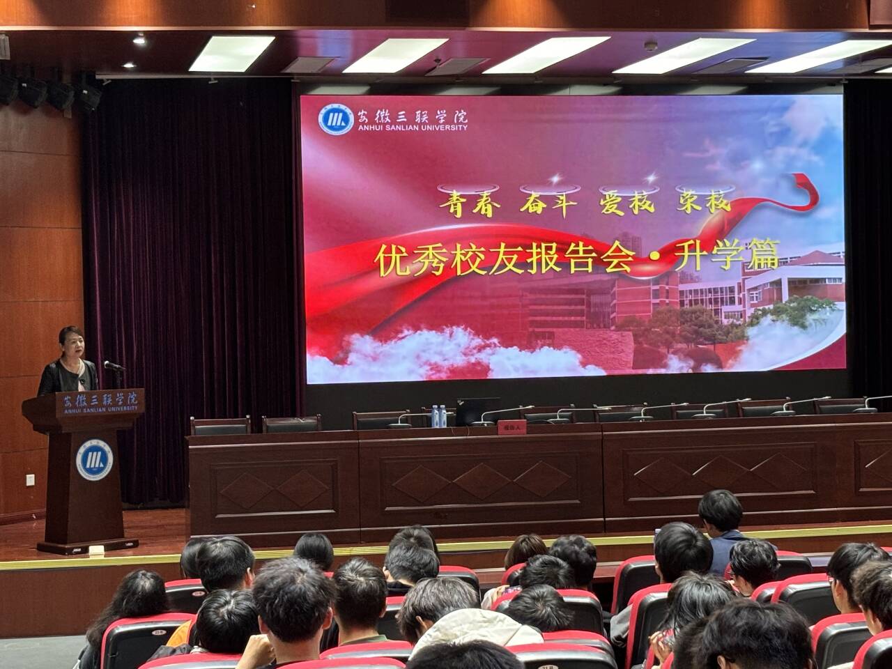 报告会上,王晓晨以《请找到你们的热爱》为主题,分享了自己在三联的学习经历、考研及申博奋斗历程,给学弟学妹们升学提供了有益帮助。戴泽坤以《我的学术之旅:从挑战到成就—安徽三联学院的力量》为主题,讲述了三联赋予他的成长力量,以及由此而取得的科研成绩。